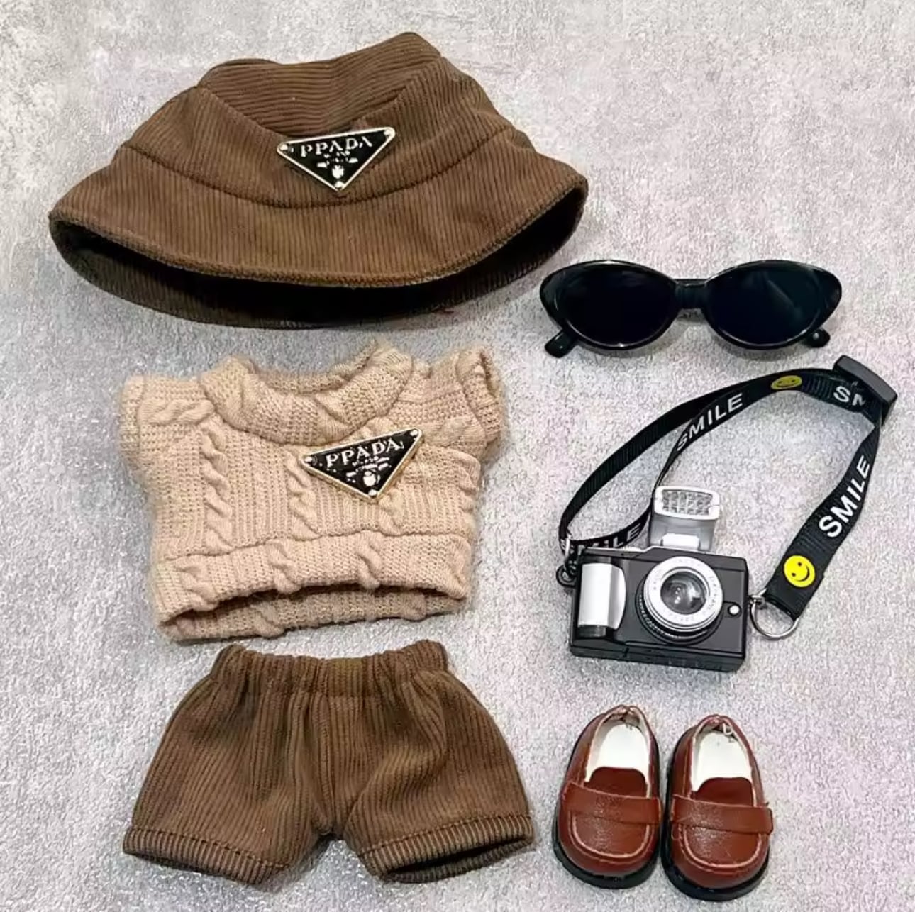 透明メガネやミニカメラ、ローファーまで揃ったフルセットだから、届いたらすぐ撮影OK!