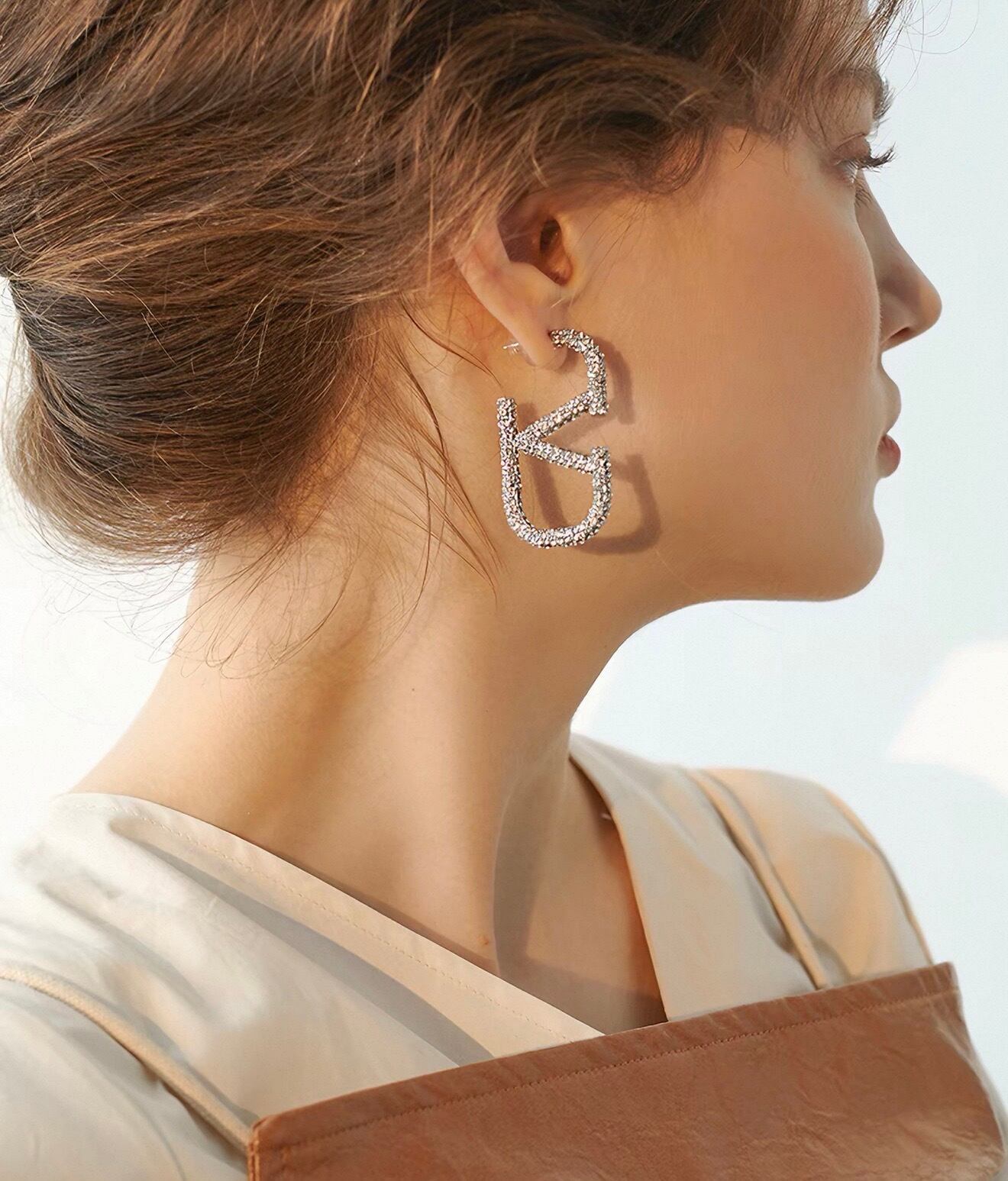 シンプルながらも洗練された印象を与える、V字デザインのピアス。